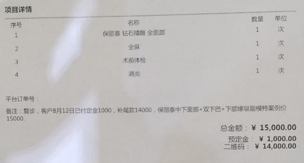 据王女士介绍,几个月前她在大众点评上看到深圳瑞港医疗美容门诊部推出的一个面部吸脂项目很不错。经过咨询王女士最终决定花费15000元,在瑞港医疗美容门诊部进行面部吸脂的手术。